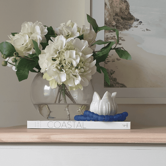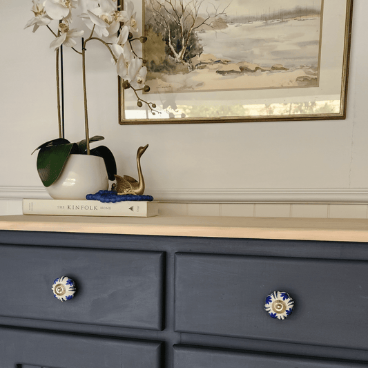 Artemis I Floral Ceramic knob with Light Blue leaves