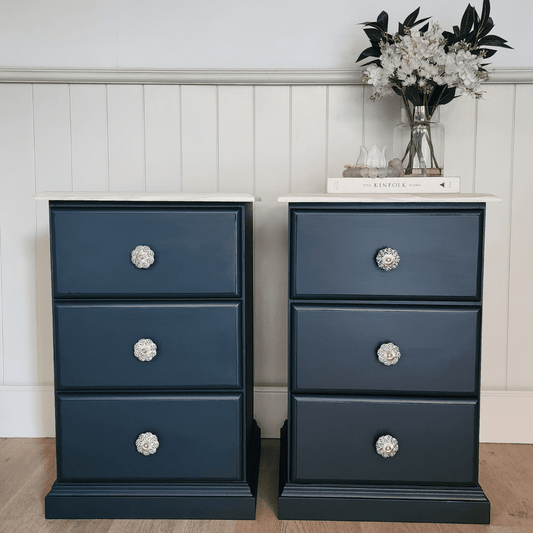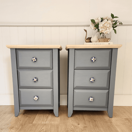 Leto I Floral Ceramic knob with Blue leaves